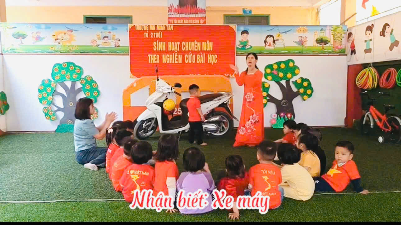 Thực hiện Kế hoạch hoạt động của Tổ chuyên môn 2+3 tuổi Trường Mầm non Minh Tân năm học 2025-2026. Trong tháng 3/2026, tổ chuyên môn 2+3 tuổi đã tổ chức sinh hoạt chuyên môn theo hướng nghiên cứu bài học với hoạt động: “Nhận biết: Xe đạp – xe máy” thuộc lĩnh vực phát triển nhận thức cho trẻ 24-36 tháng tuổi.