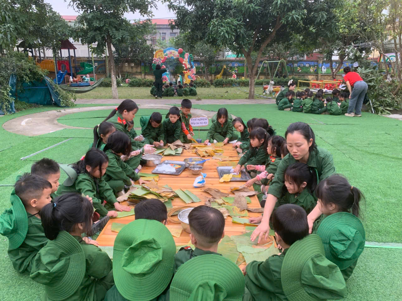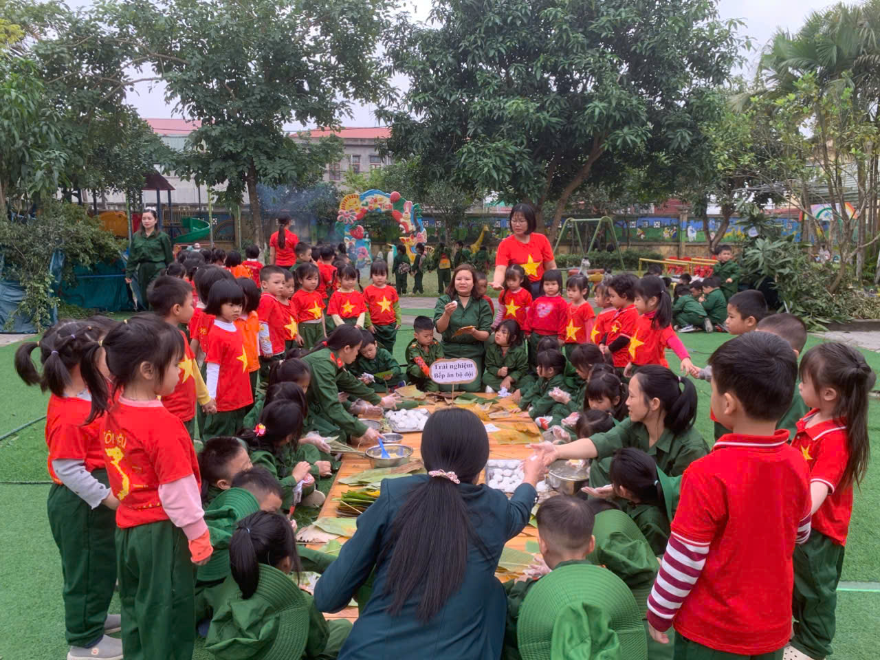 Trường có 02 điểm trường với 12 nhóm, lớp và 300 học sinh. Về đội ngũ trường có 32 CB,GV,NV trong đó CBQL có 02 đồng chí, 22 giáo viên trực tiếp giảng dạy, 05 nhân viên nuôi dưỡng, 01 nhân viên kế toán, 02 nhân viên bảo vệ. Tỷ lệ cán bộ, giáo viên đạt chuẩn và trên chuẩn là 100%. Trường có Chi bộ đảng với 13 đảng viên. Chi bộ nhà trường luôn được công nhận là chi bộ hoàn thành và hoàn thành tốt nhiệm vụ. Các tổ chức đoàn thể như Đoàn thanh niên, Ban đại diện CMHS đều hoạt động tích cực, góp phần cùng nhà trường hoàn thành tốt nhiệm vụ trong từng năm học.