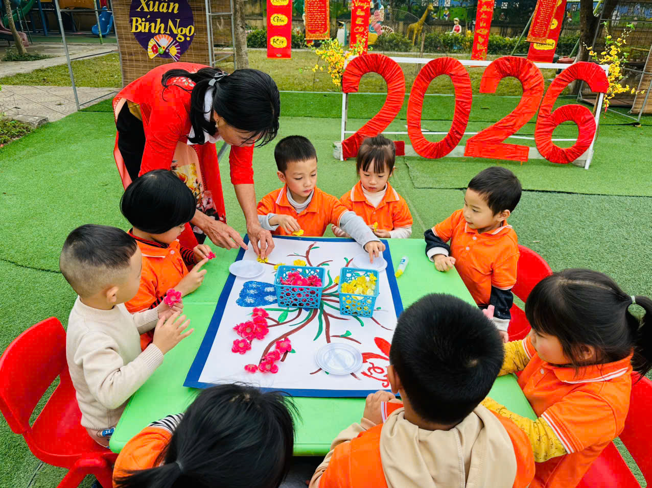 HĐ trải nghiệm: Làm phong bao lì xì; Hoa mùa xuân – Khối 4 tuổi