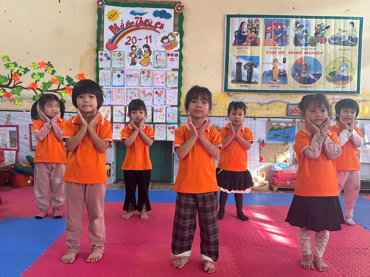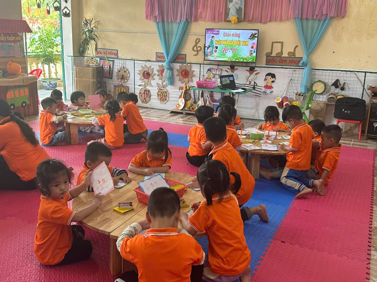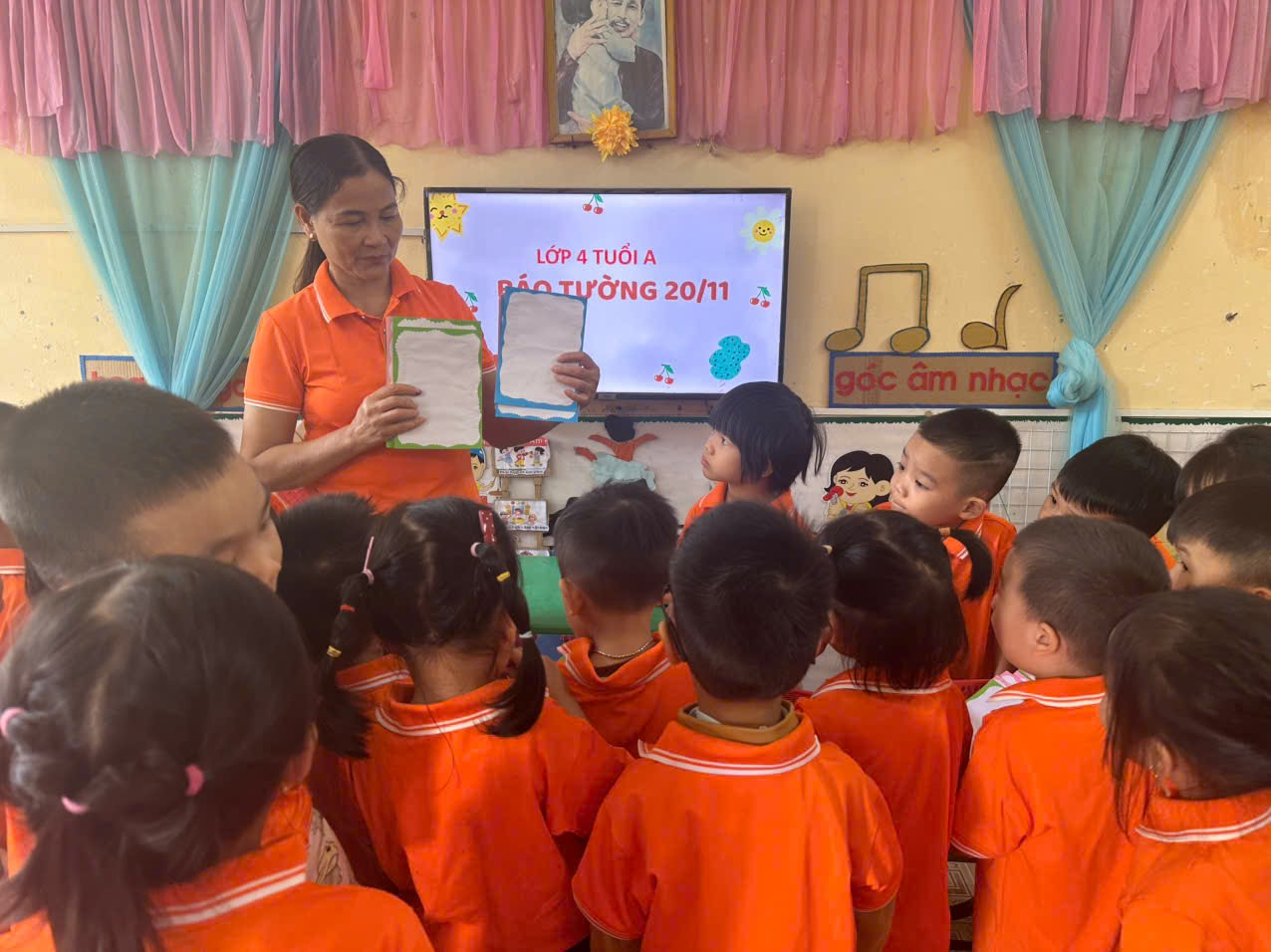 Nhân ngày 20-11 – Ngày Nhà giáo Việt Nam, lớp 4 tuổi A đã tổ chức một buổi trải nghiệm đầy ý nghĩa, kết hợp làm báo tường và múa hát văn nghệ để chúc mừng các thầy cô. Đây là dịp để các bé thể hiện sự yêu thương, biết ơn đồng thời rèn luyện kỹ năng sáng tạo, hợp tác và biểu diễn.