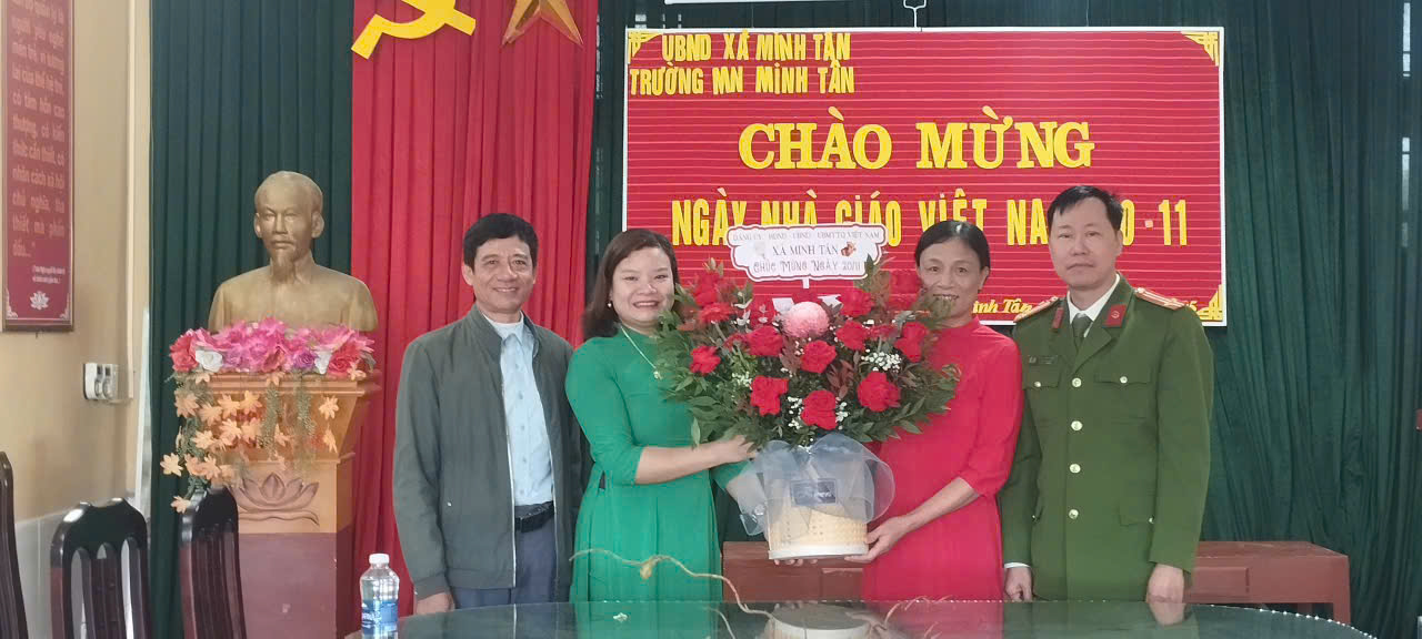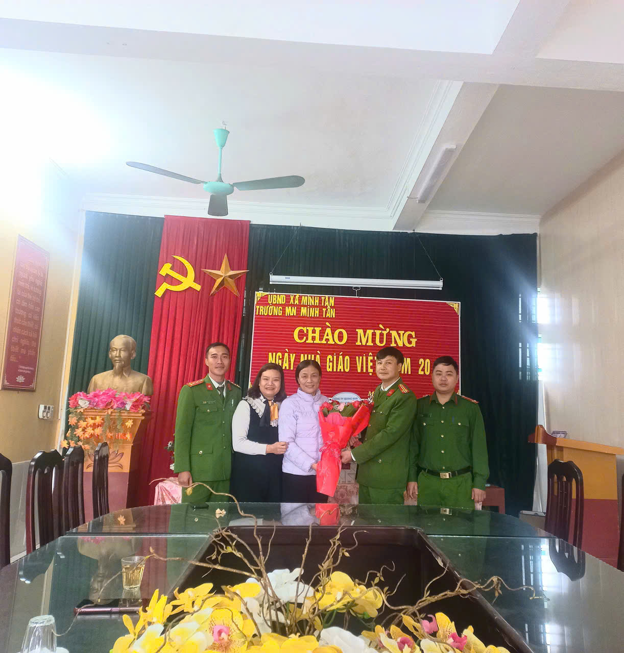 Đ/c Trần Đình Thụy – Trưởng Công an xã Minh Tân, Đ/c Lê Quang Huy- Phó Ban xây dựng Đảng đến thăm và chúc mừng nhà trường
