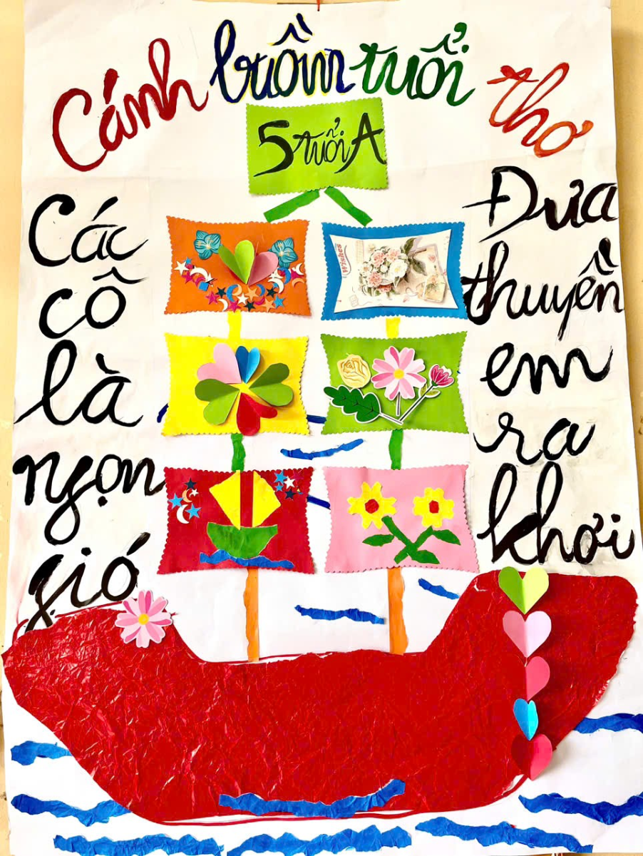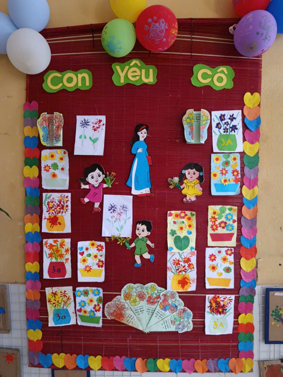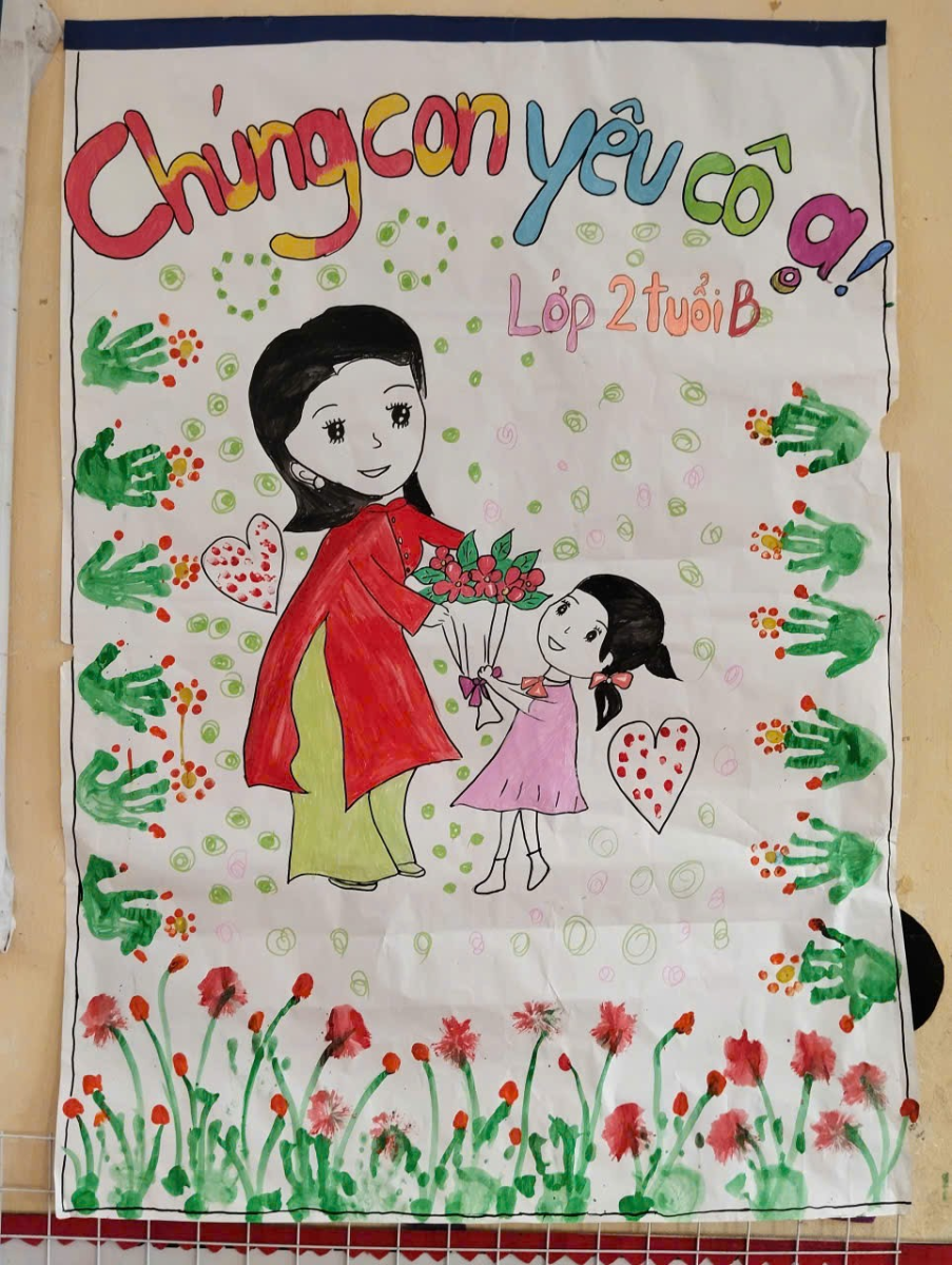 Trẻ được tham gia tô màu, vẽ tranh, làm thiệp, trang trí báo tường với những lời chúc ngộ nghĩnh, hồn nhiên nhưng vô cùng ấm áp dành cho cô giáo.