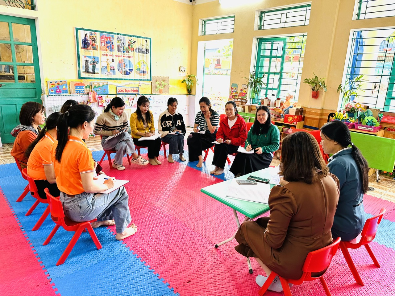 Dưới đây là một số hình ảnh triển khai và tổ chức thực hành chuyên đề: Giáo dục cảm xúc, kỹ năng xã hội cho trẻ