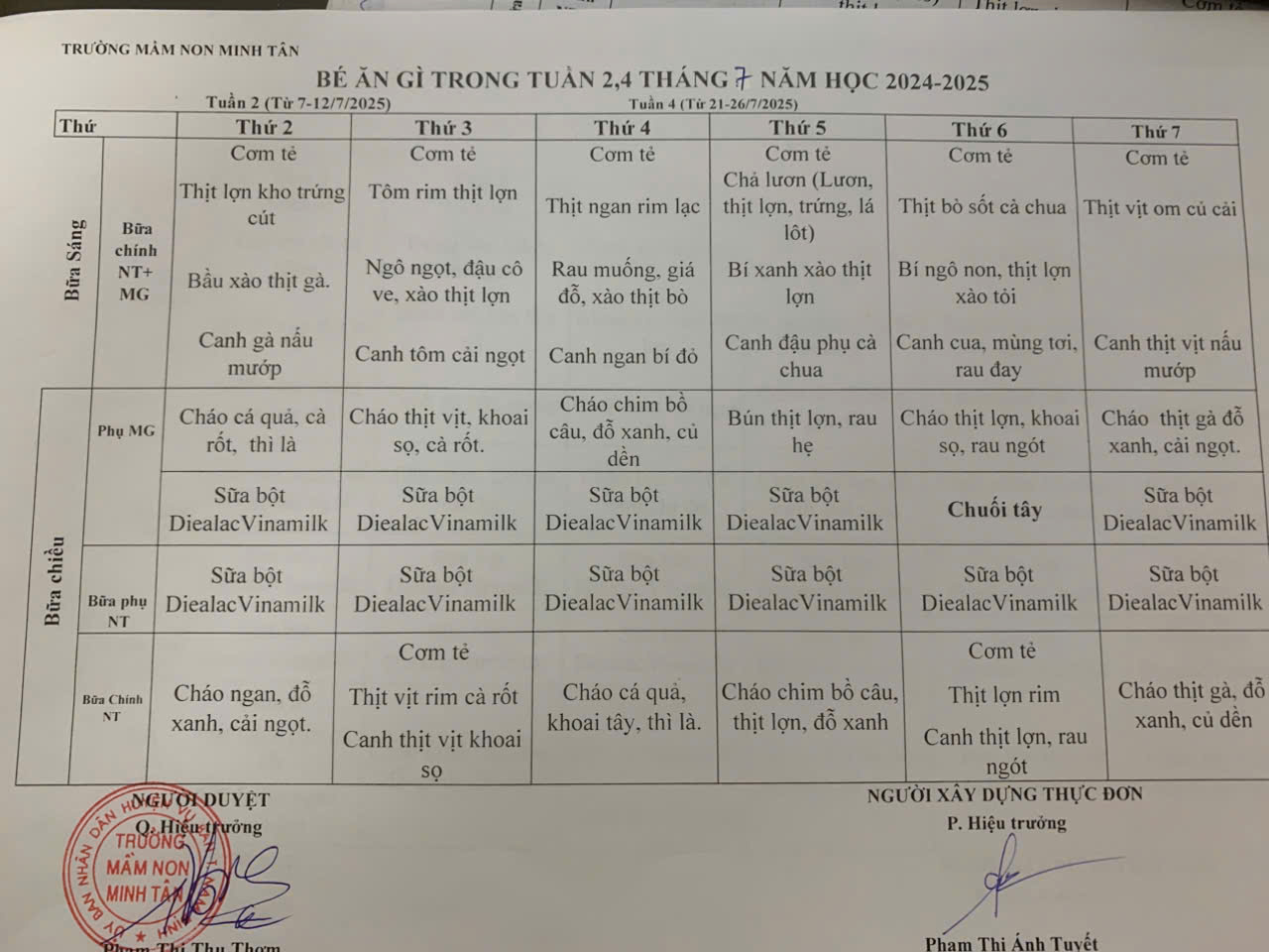 THỰC ĐƠN THÁNG 7/2025