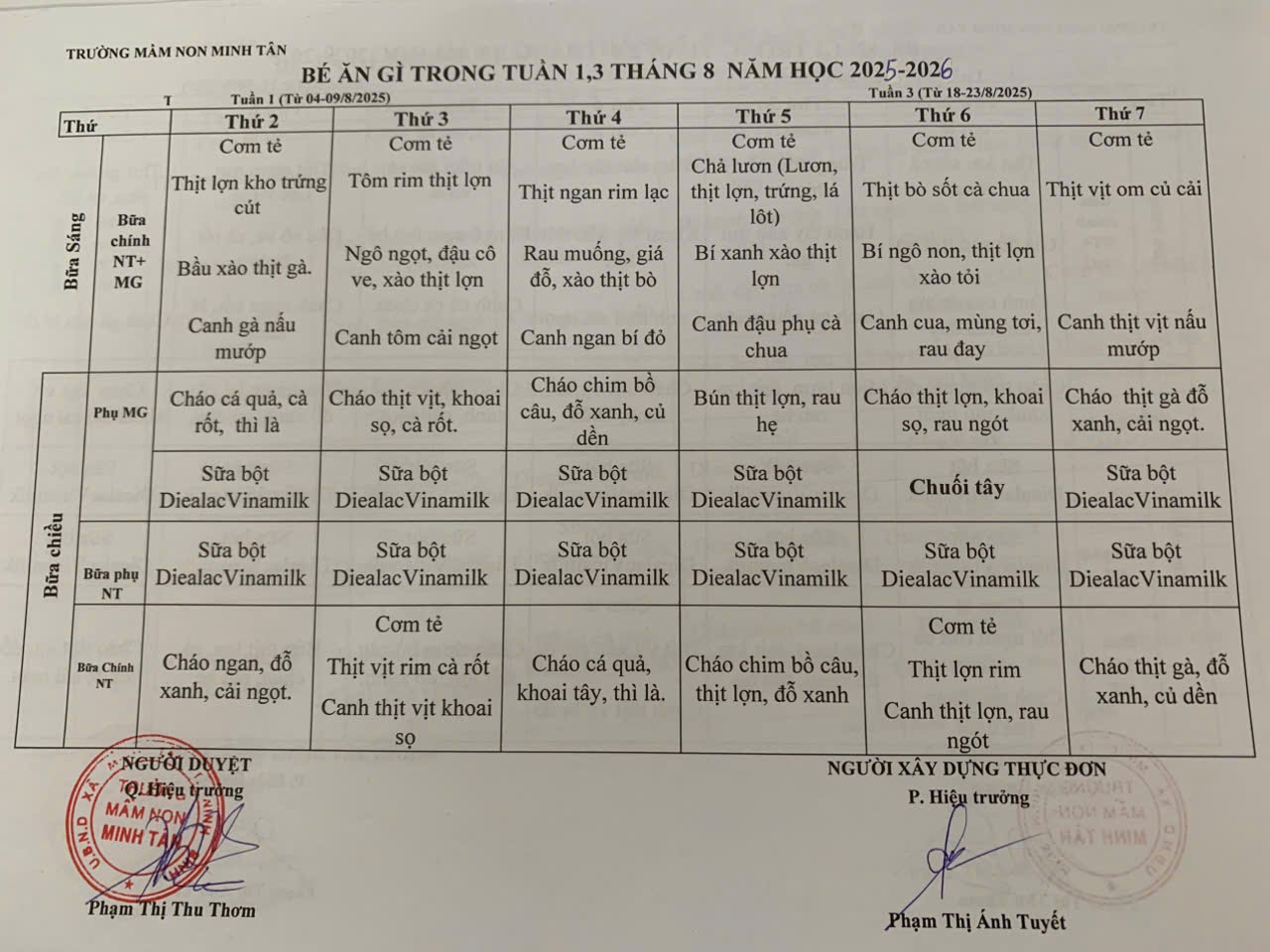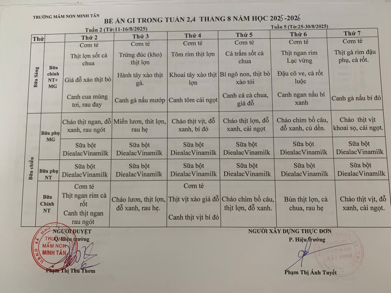 Thực đơn tháng 8/2025